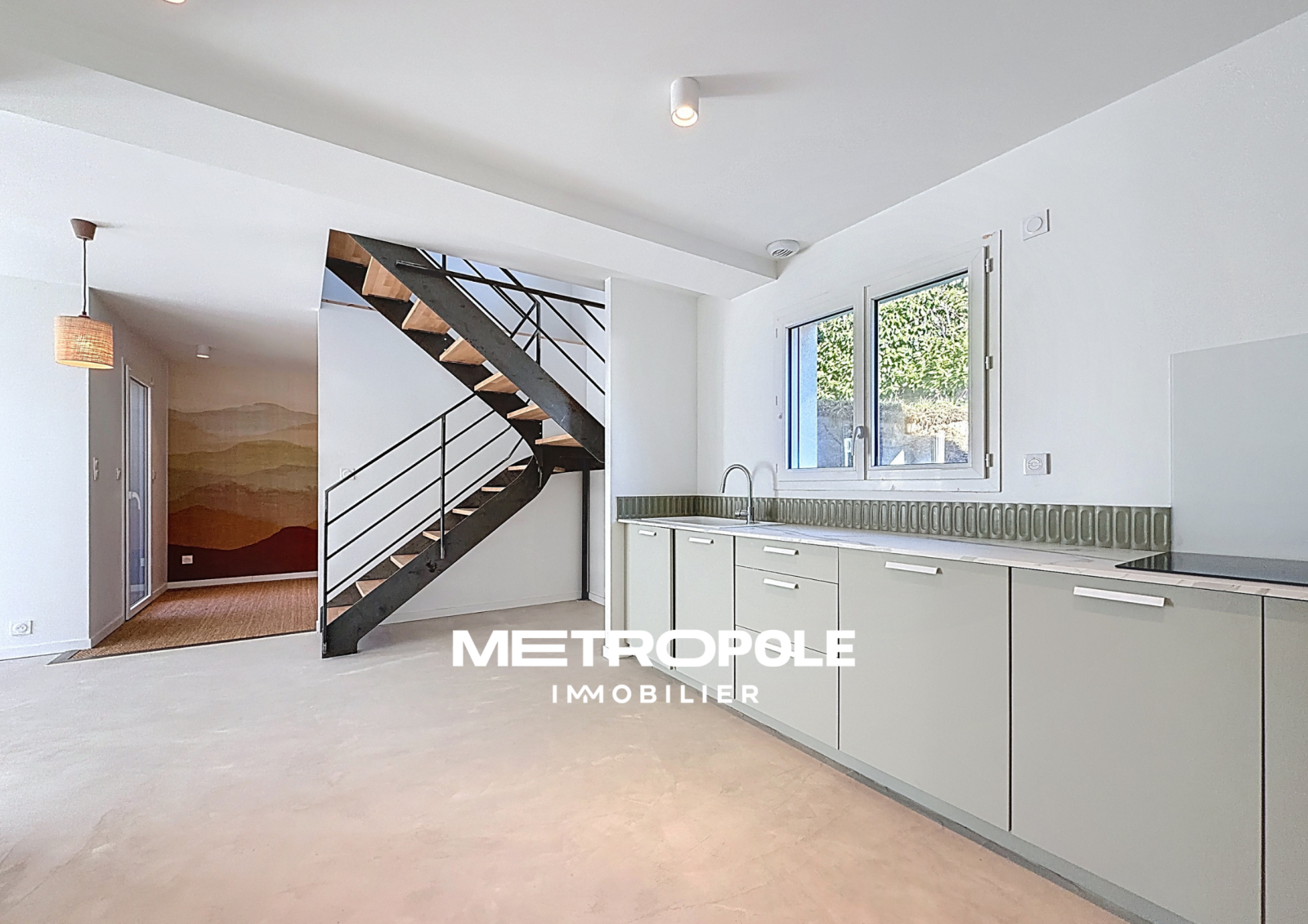 D’une surface d’environ 90 m², elle se compose au rez-de-chaussée d’une belle pièce de vie lumineuse avec cuisine ouverte, séjour et salle à manger, d’une suite parentale, ainsi que d’un WC indépendant.