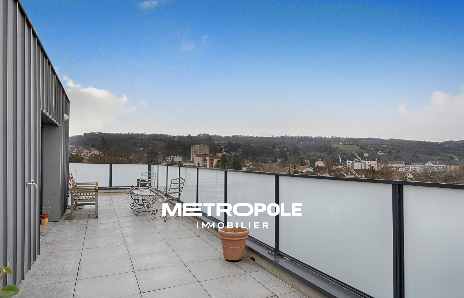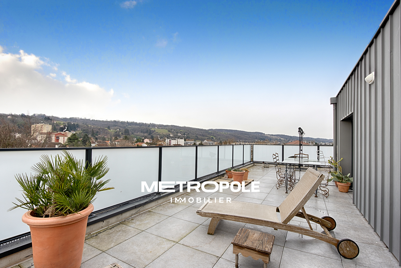 Une large et agréable terrasse de 70 m² environ exposée SUD OUEST, et trois garages fermés en sous-sol complètent ce bien idéalement situé au coeur de toutes les commodités, écoles, transports en commun, et à 5 minutes de l'accès A43 et de la gare SNCF.