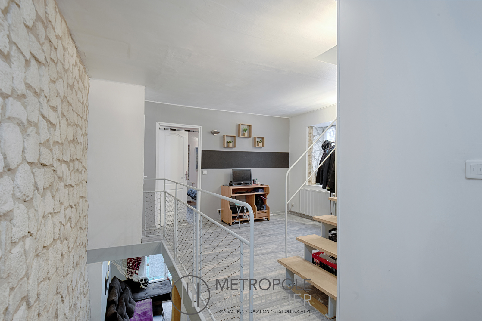 METROPOLE Immobilier vous propose en exclusivité sur la commune de SAINT-SAVIN cette charmante maison de type 3 d'environ 90 m². Elle se compose au rez de chaussée, d'une entrée, d'une pièce à vivre d'environ 34 m² avec cuisine équipée ouverte sur le séjour. Au premier étage, vous découvrez une belle mezzanine de 14m², une chambre de 12 m² environ avec placard mural, une salle d'eau, ainsi qu'un WC. Au dernier étage, vous profiterez d'une grande chambre en sous pente d'environ 22 m² avec de nombreux rangements. A l'extérieur une agréable terrasse de 16 m² complète ce bien idéalement situé au centre du village de Saint-Savin, qui dispose de nombreux commerces et services accessibles à pieds. Accès A43 à 10 minutes, et Gare SNCF à 15 minutes. REF. 070MAS