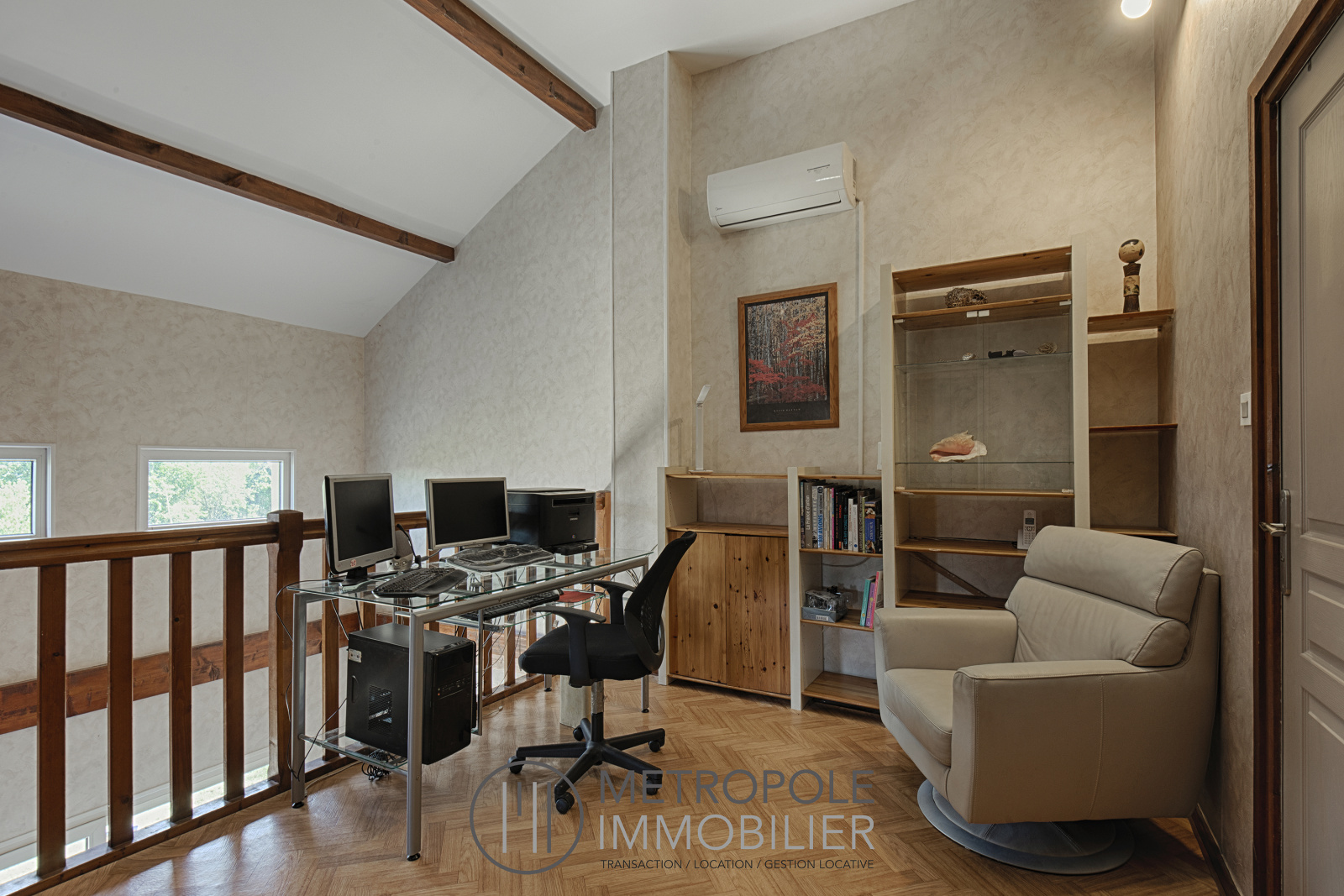 Au premier étage, vous disposerez d'une mezzanine pouvant servir de bureau, de deux chambres supplémentaires et d'une salle d'eau.