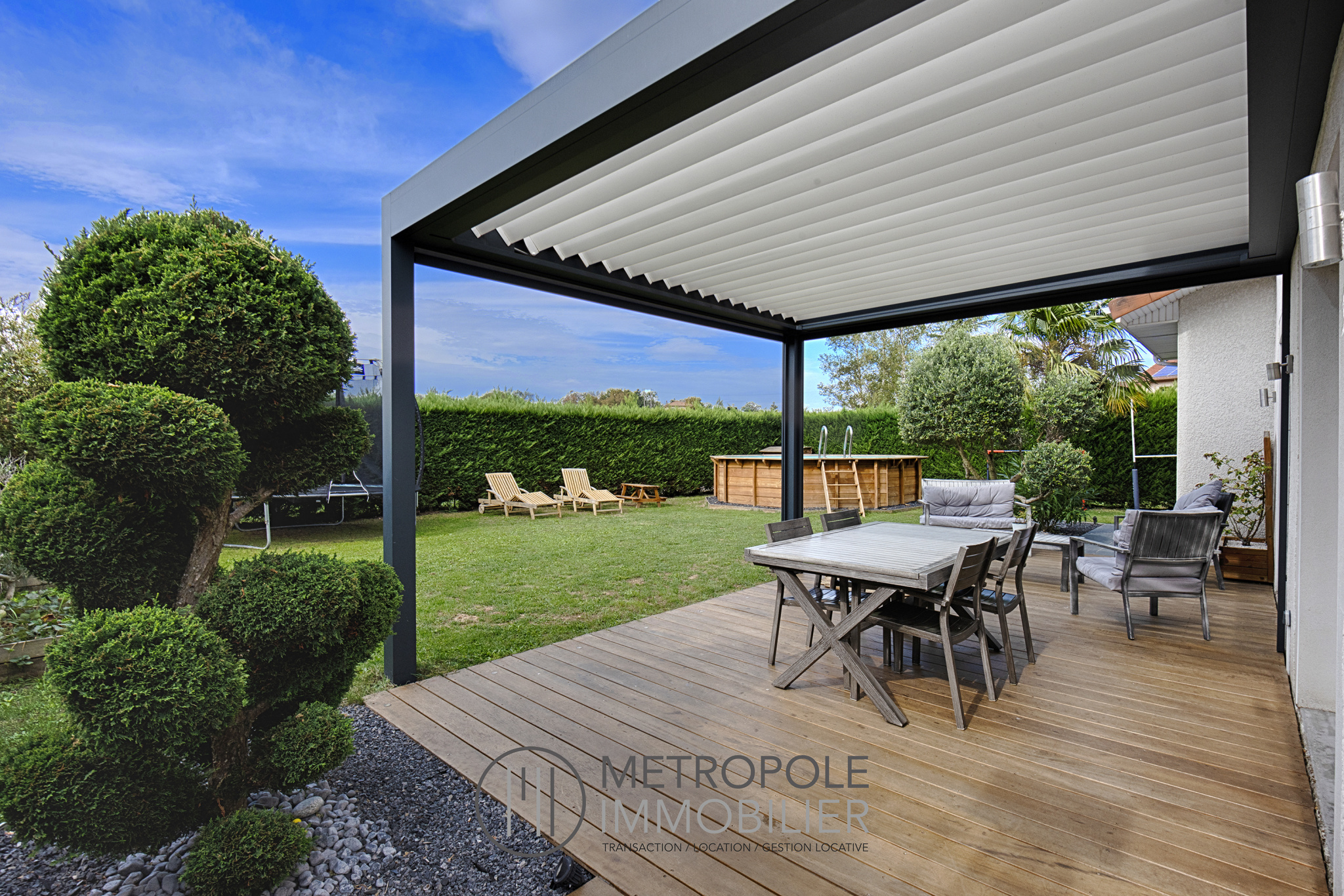 A l'extérieur, sur une parcelle d'environ 580 m² entièrement clôturée, arborée, et aménagée, vous profiterez d'une piscine hors sol 5x5, d'un terrain de pétanque, d'un cabanon de jardin, de deux terrasses dont l'une avec pergola bioclimatique et d'une cour vous permettant de stationner plusieurs véhicules.
