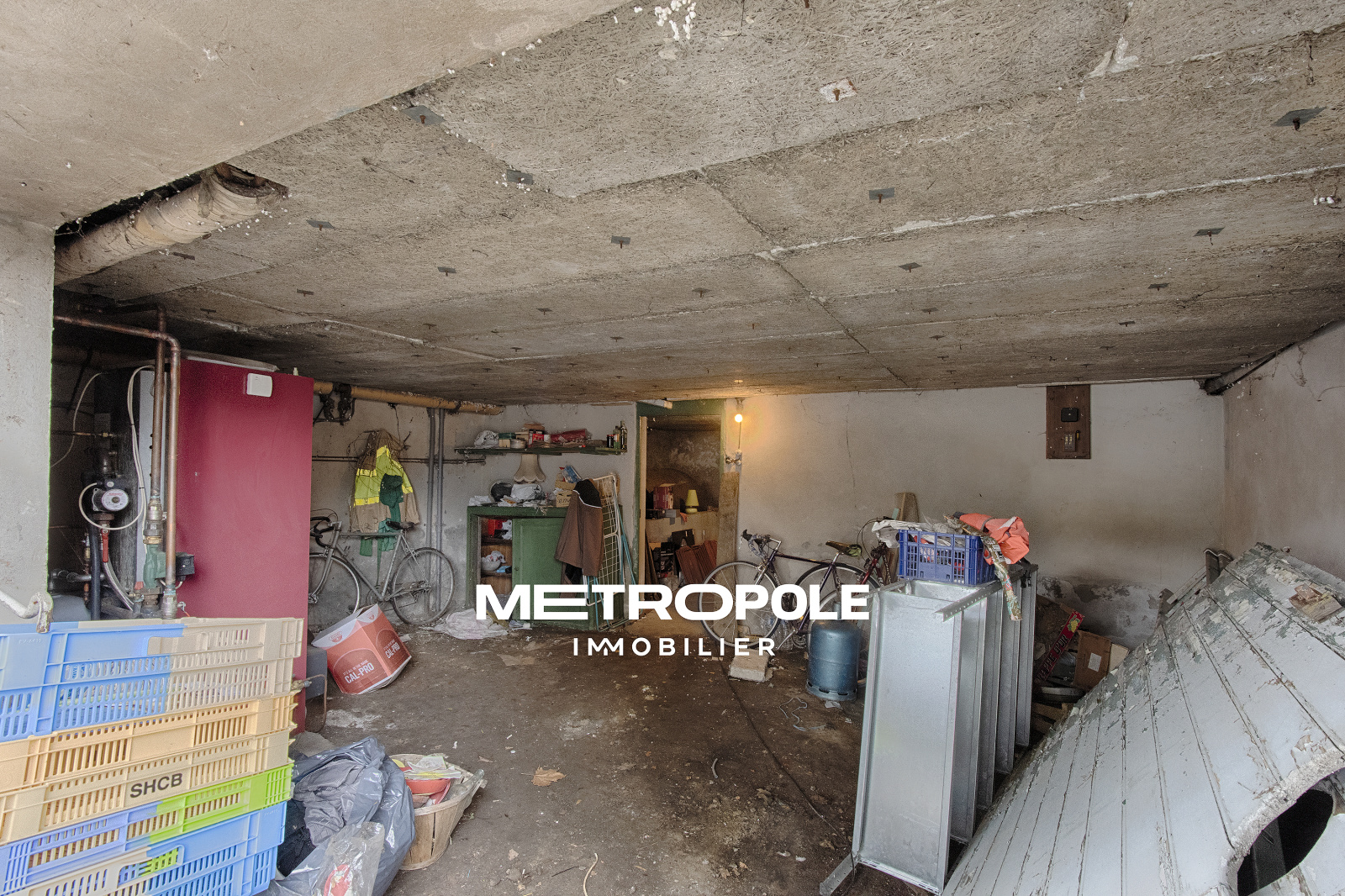 Le sous-sol complet profite d'une chaufferie et d'un garage avec accès sur la rue.