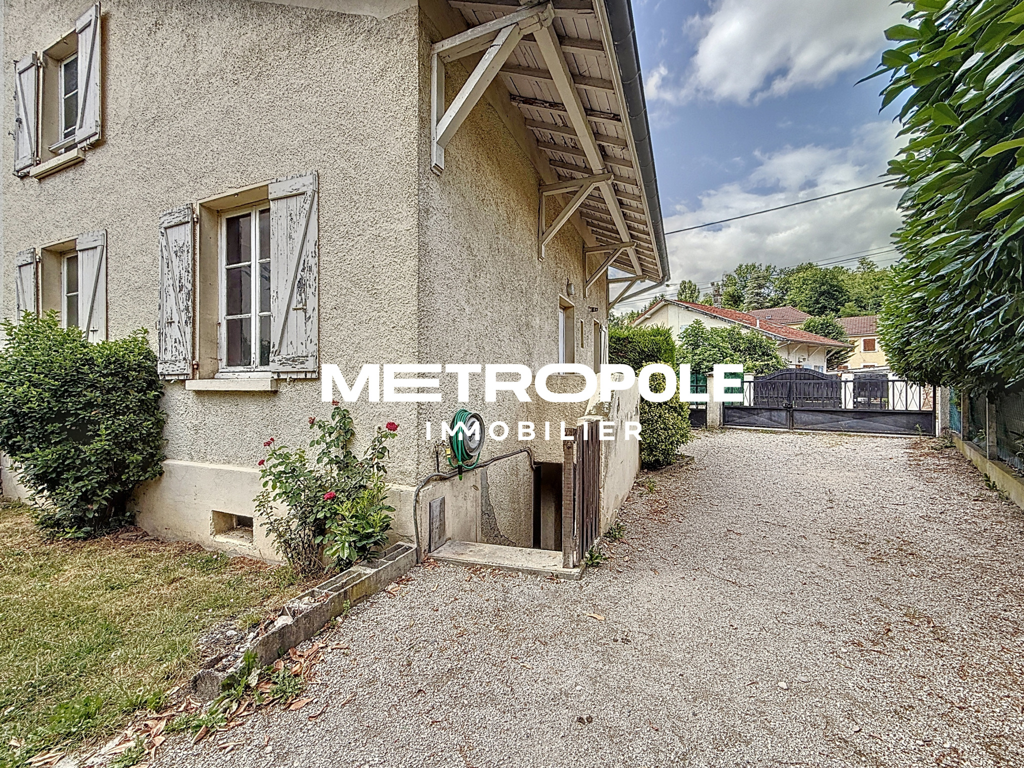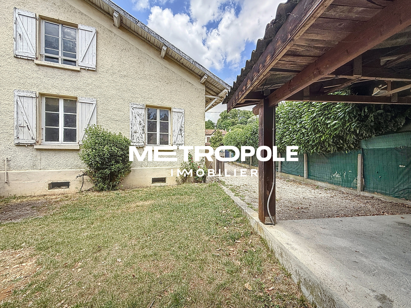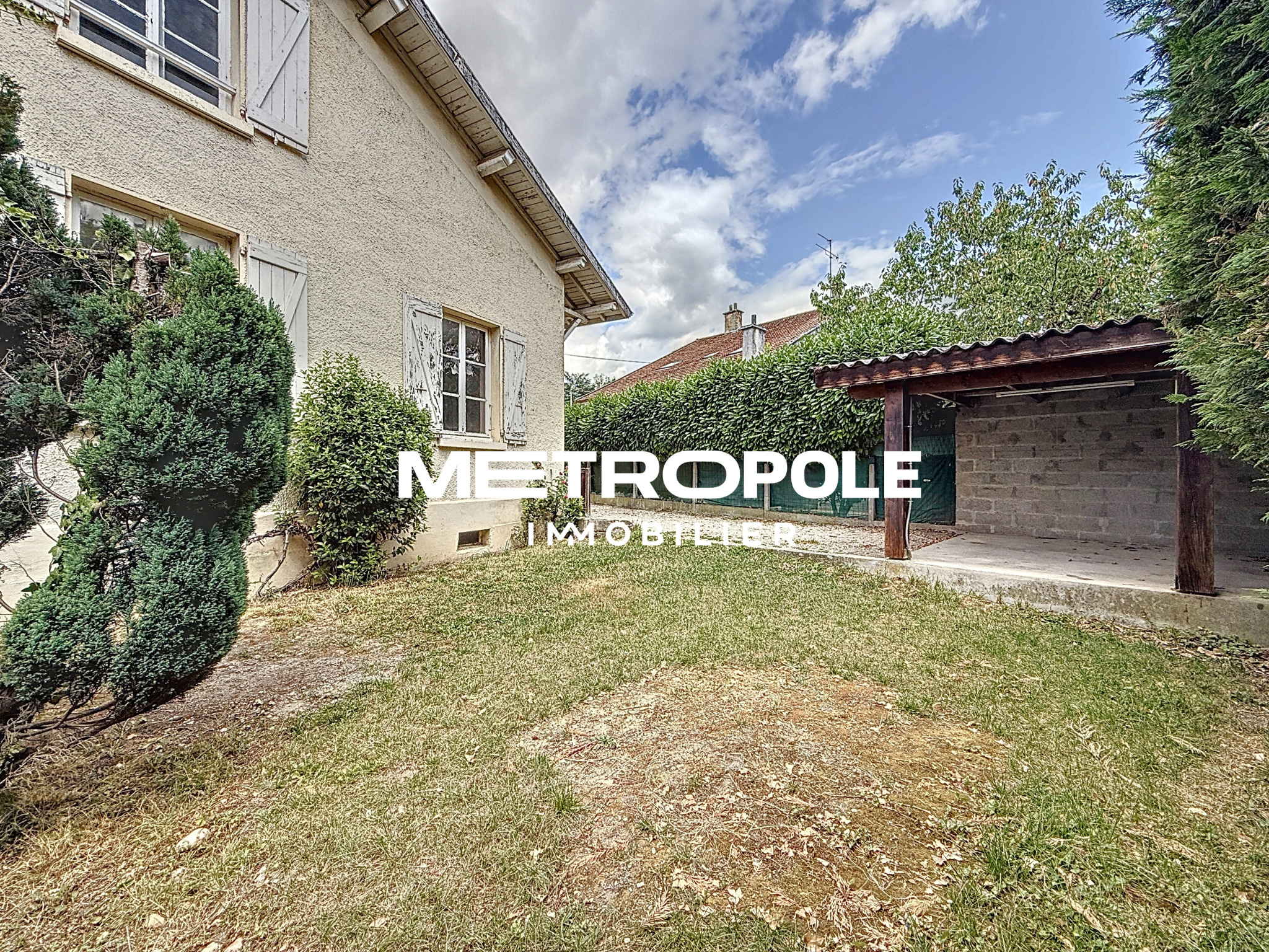 A l'extérieur, vous profiterez d'un carport, d'une cours et d'un jardin, le tout sur une parcelle clôturée d'environ 241 m² idéalement située à 2 minutes à pied du centre-ville et de toutes les commodités, ainsi qu'à 5 minutes de l'entrée A43 et de la gare SNCF.