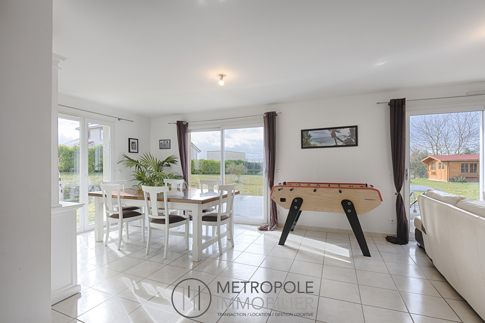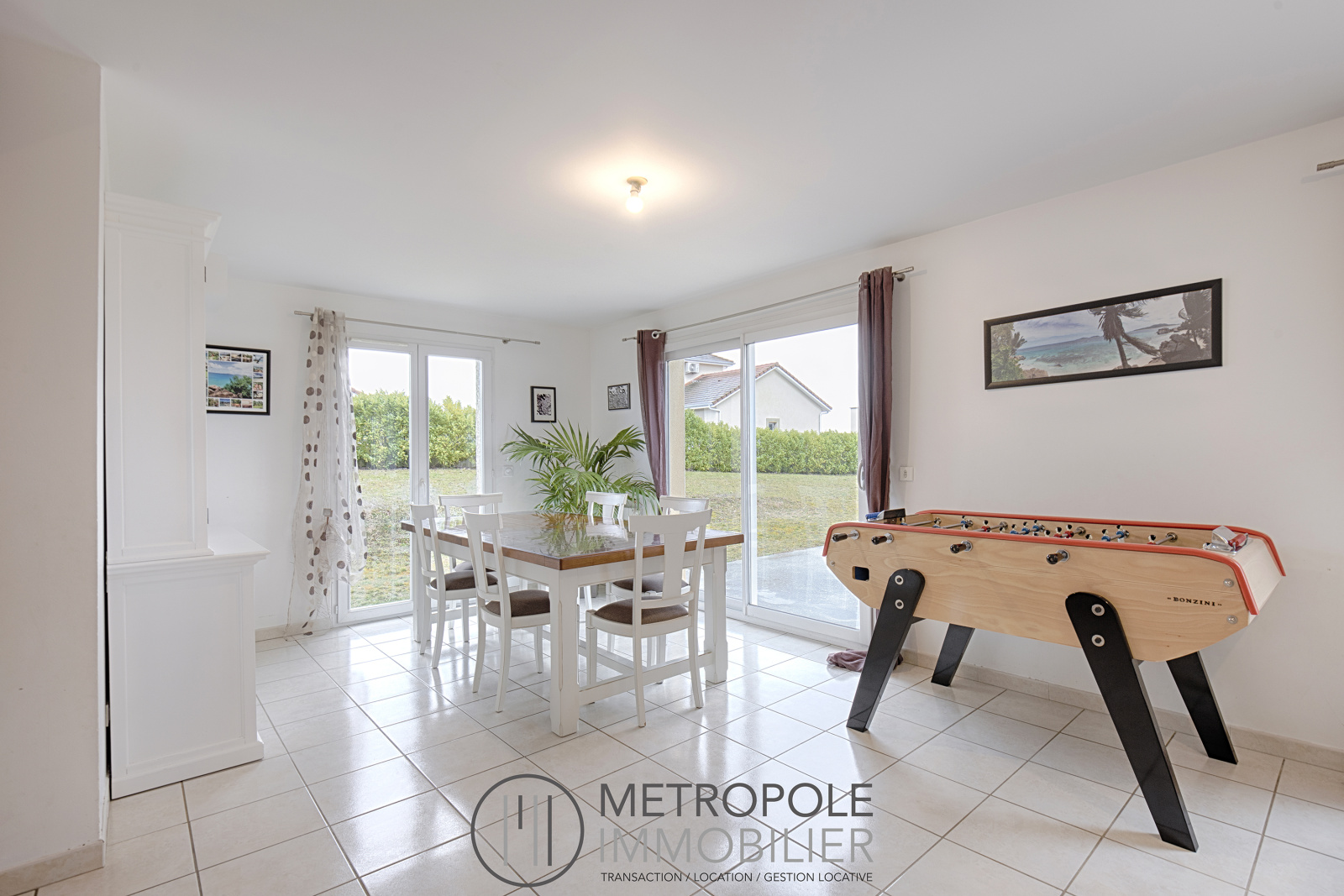 METROPOLE Immobilier Bourgoin-Jallieu vous propose en exclusivité sur la commune de SERMERIEU cette maison de type 6 d'environ 110 m². Construite en 2012, elle se compose au rez de chaussée, d'une entrée, d'une pièce à vivre de 38 m² environ avec salon et salle à manger, d'une cuisine équipée communicante de 11m², d'une chambre avec placard mural et d'un WC. A l'étage, vous profiterez d'un dégagement desservant 4 chambres, une salle de bain, et un WC. Le bien dispose d'un double garage attenant d'environ 36 m² avec accès direct depuis la maison. A l'extérieur, sur une belle parcelle plate de 1763 m² close par un portail electrique, vous trouverez deux terrasses dont une couverte ainsi qu'un abris bois. Le tout dans un environnement calme, mais idéalement situé proche du centre du village de SERMERIEU. Accès A43, Gare SNCF et centre ville de Bourgoin-Jallieu à 20 minutes. REF. 115MAS