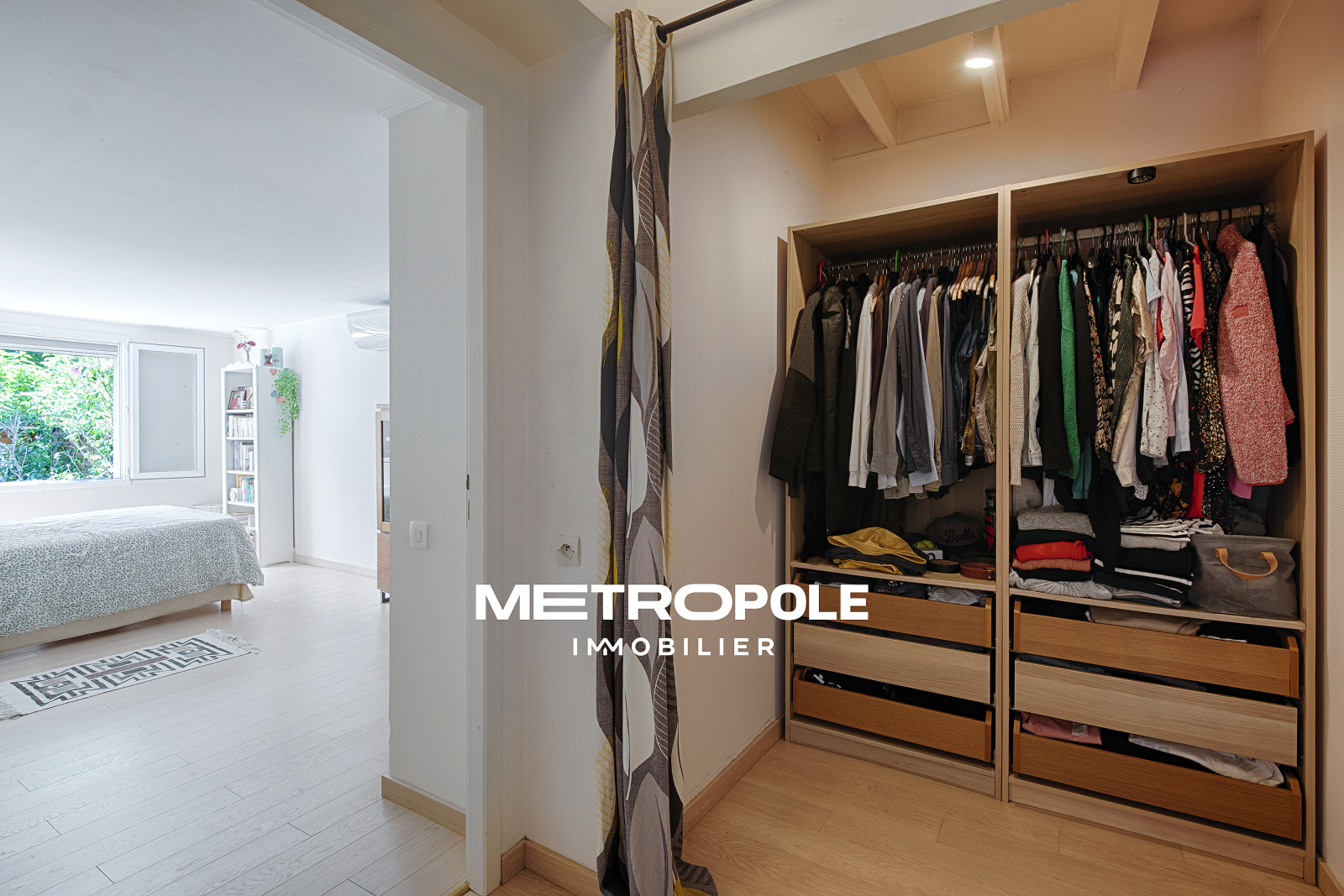 Elle se compose au rez-de-chaussée d'une entrée avec placard, d'une agréable pièce de vie avec cuisine équipée ouverte sur le séjour, d'une aile gauche avec une chambre, un dressing, et un bureau, et d'une autre aile droite avec une salle d'eau, une salle de bain, une buanderie et un WC.