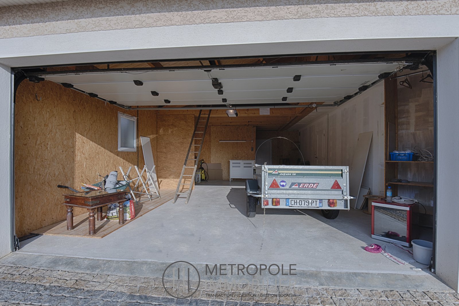 Un double garage attenant accessible depuis la maison de 55 m² avec mezzanine et une cave complètent ce bien.