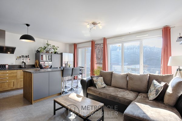Une terrasse d'environ 7 m² avec vue dégagée complète ce bien idéalement situé à proximité immédiate des commodités, écoles, transports en commun, à 5 minutes de l'accès A43 et à 2 min de la gare SNCF.