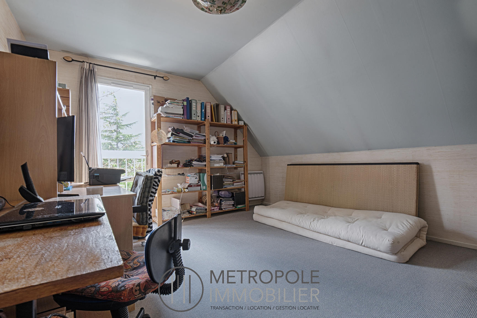 Au premier étage vous disposez de deux chambres mansardées d'environ 18 m² et 12,5 m², et d'une salle de bain avec WC.