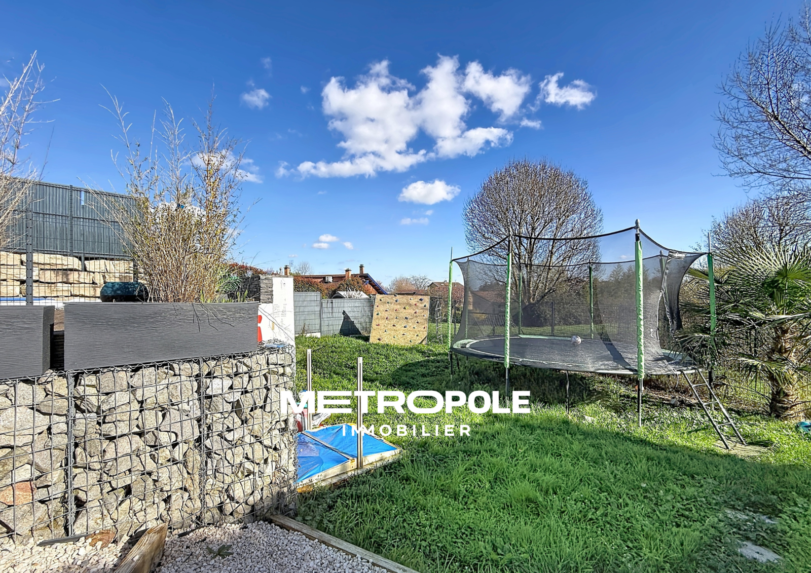 À l’extérieur, le terrain est facile à entretenir et dispose d’une piscine sécurisée, idéale pour profiter des beaux jours.