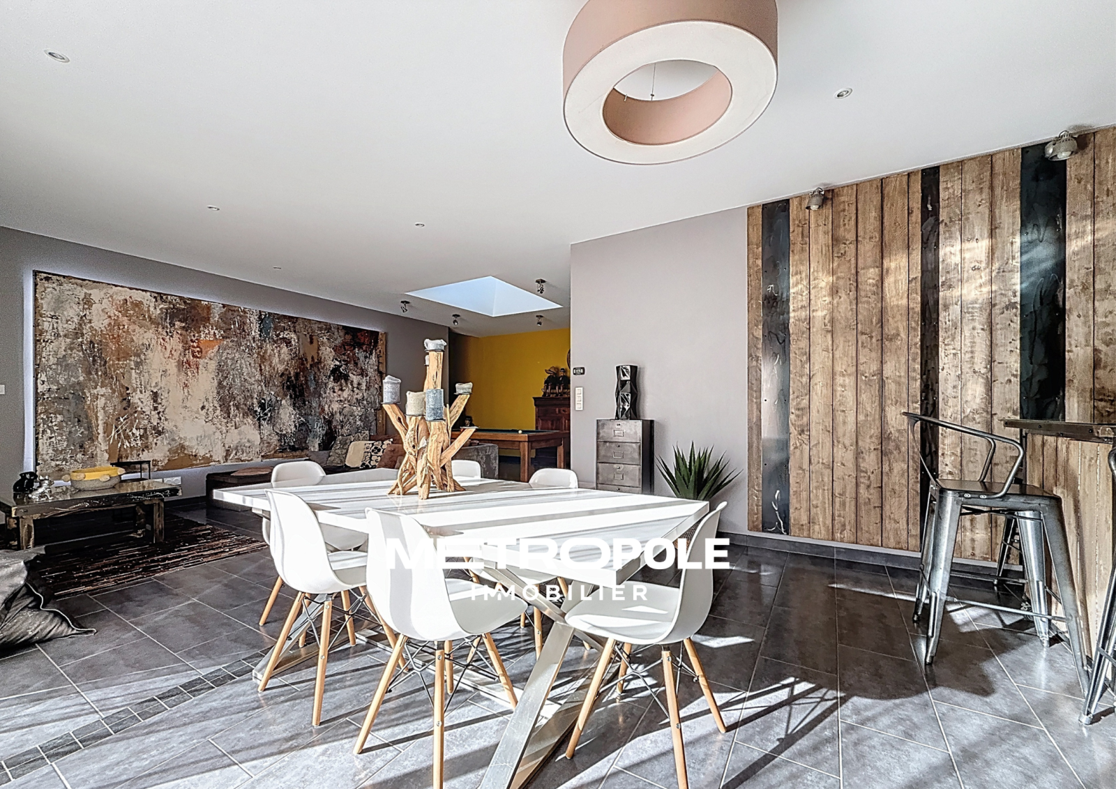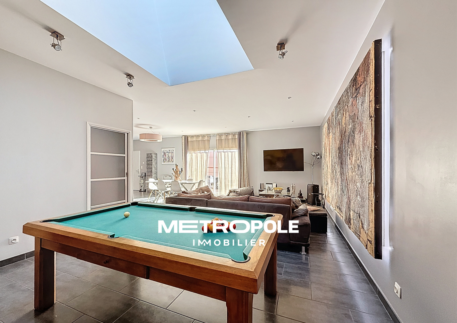 À l’intérieur, vous serez immédiatement séduits par son immense pièce de vie baignée de lumière, comprenant une cuisine ouverte, un espace salle à manger, un salon chaleureux ainsi qu’un coin bar et billard pour des instants de partage.