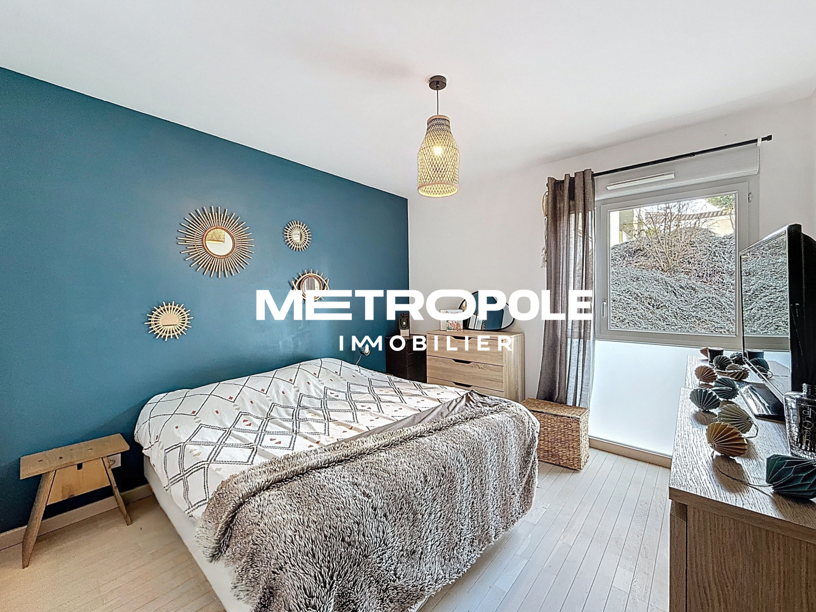 Situé en rez-de-jardin d'une résidence de standing construite en juin 2016, il se compose d'une entrée, d'une grande pièce de vie avec cuisine équipée ouverte sur le séjour, de deux chambres (9 et 11,5m²) avec placard mural, d'une salle de bain avec WC indépendant.