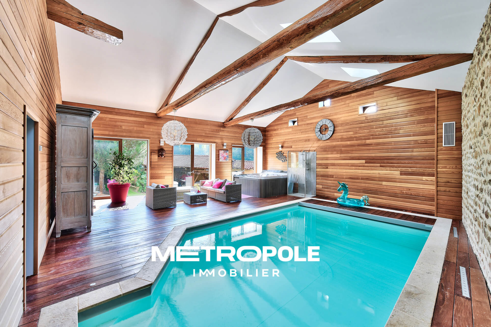 L’espace de vie s’organise autour d’une salle à manger conviviale avec bar, d’une cuisine donnant accès à la terrasse, d’un salon chaleureux avec cheminée, ainsi que d’une salle de jeux prolongée par une grande mezzanine. Deux chambres se trouvent également sur ce niveau. Véritable coup de cœur : un espace détente unique de près de 100 m², intégrant une piscine intérieure chauffée et un spa, parfaitement équipés pour une utilisation confortable toute l’année.