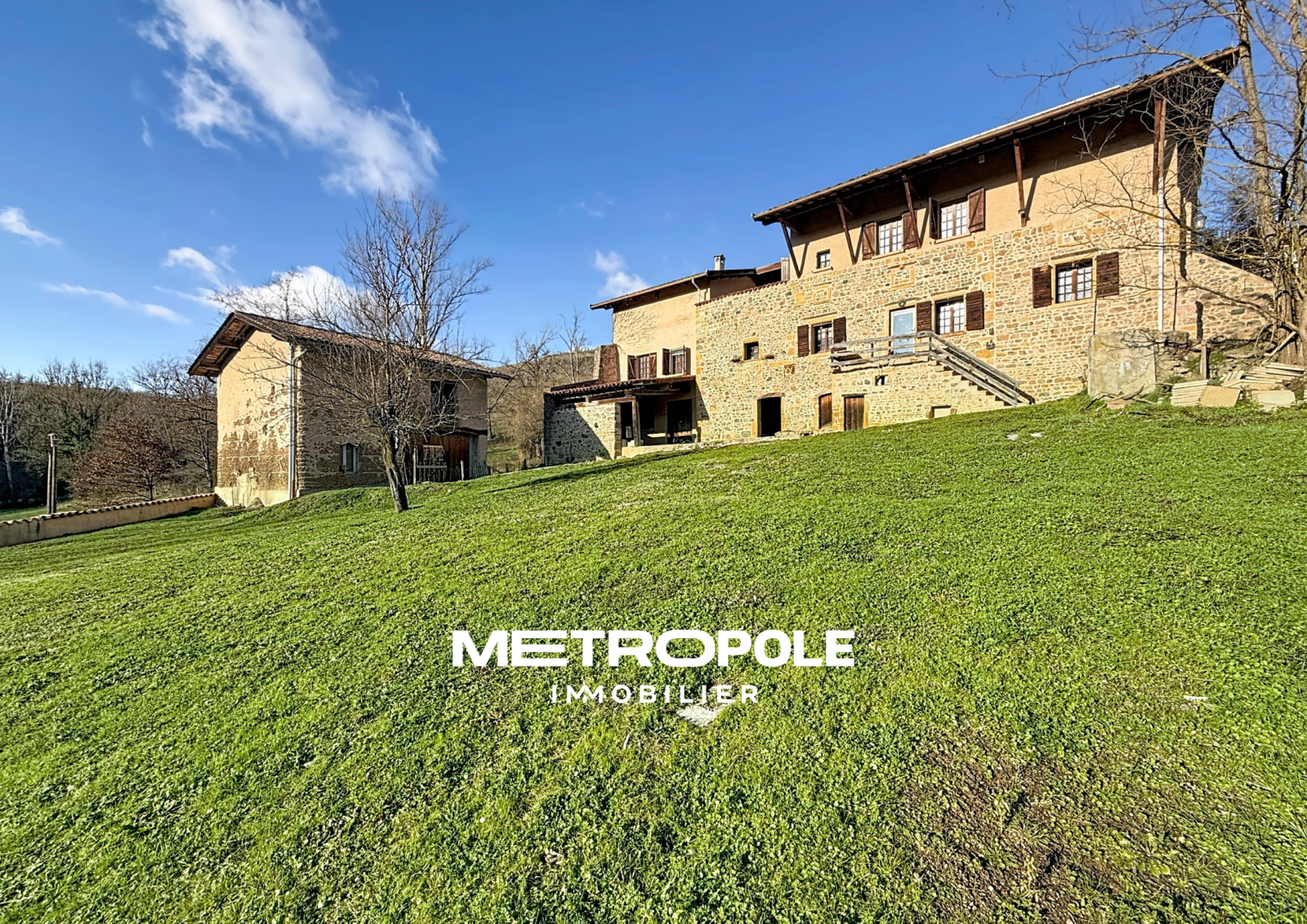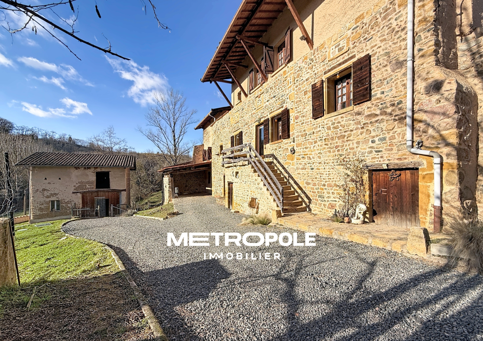 METROPOLE IMMOBILIER vous propose, au sein d’un petit hameau de la commune de Bully, à une trentaines de minutes seulement de Lyon , cette authentique maison en pierres dorées de 183 m² habitables, s’implantant sur un vaste terrain arboré d’environ 4 400 m², offrant un cadre de vie paisible et privilégié.
