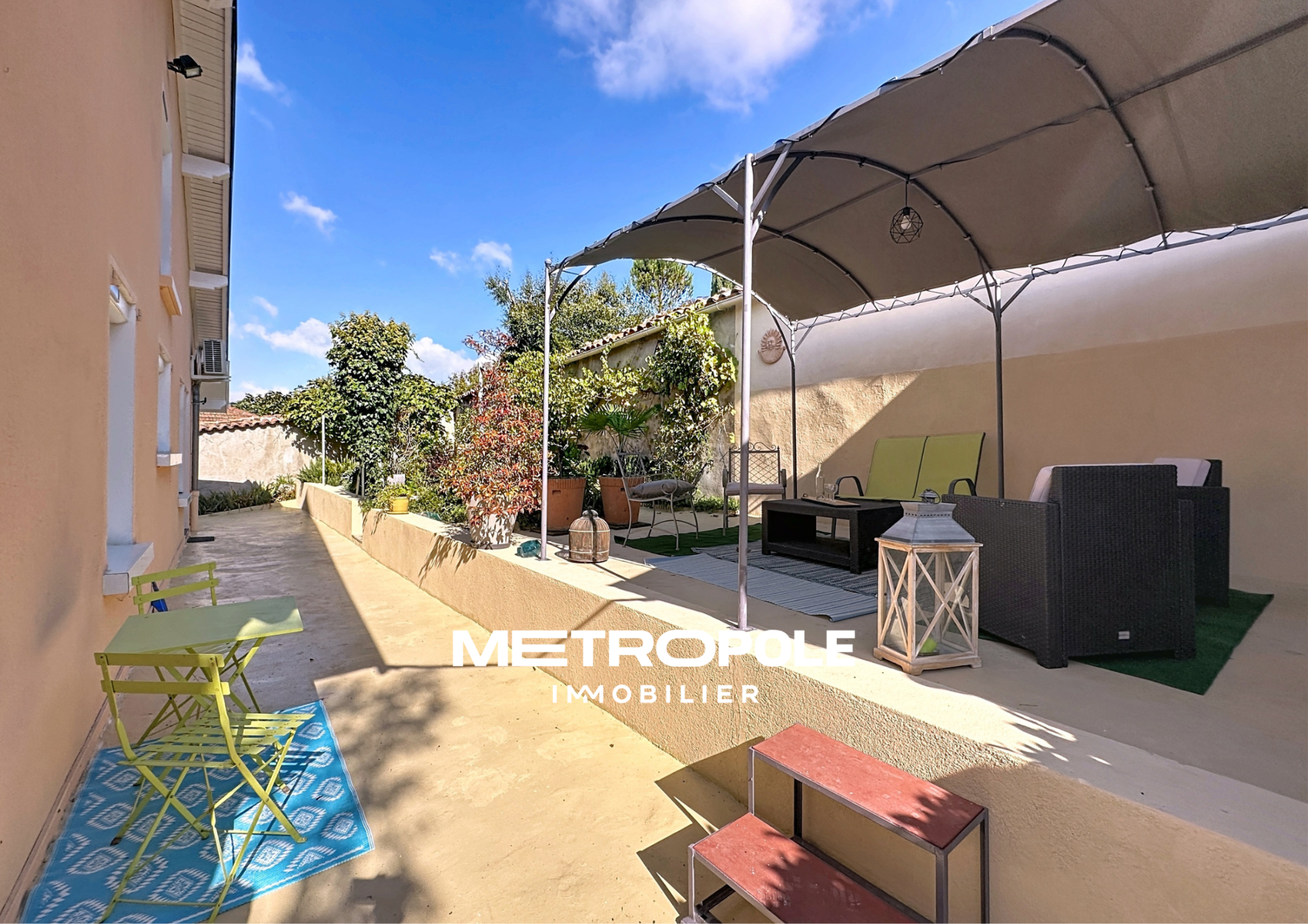 À l’extérieur, un jardin arboré vous accueille et crée une atmosphère paisible dès l’arrivée. Vous pourrez également profiter de deux terrasses, exposées nord et sud, idéales pour vos moments de détente.