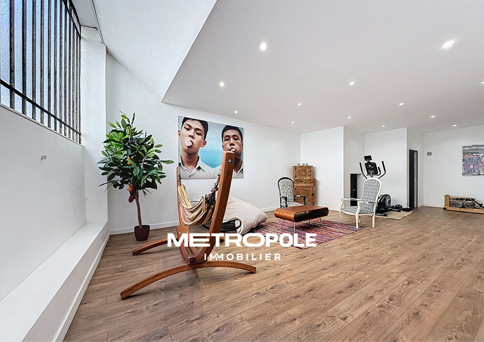 Dès l’entrée, vous découvrirez une grande pièce de 52 m² offrant de nombreuses possibilités d’aménagement : salle de sport, atelier, bureau ou salle de jeux, selon vos envies. Elle s’accompagne d’un garage spacieux de 52 m², capable d’accueillir plusieurs véhicules, un vrai atout en centre-ville.